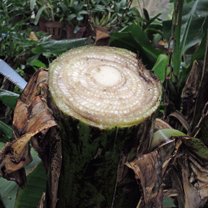 - 我們用的香蕉是天然植株。莖上的黑色變色和棕色斑點是莖上的天然紋路。